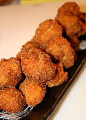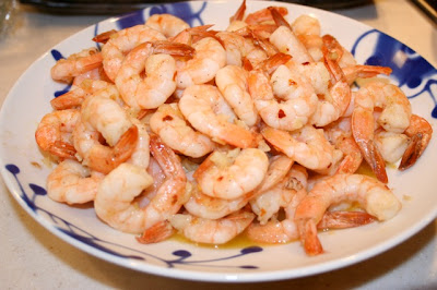 Here’s an other classic Spanish tapas that I served on New Year’s Eve. It couldn’t get simpler. I just heated some olive oil in a pan, added some red pepper flakes and lots of chopped garlic. This was cooked for just a few seconds and the shrimp was tossed in. It only takes a couple of minutes of stir frying to cook the shrimp through. Near the end I squeezed a lemon over the shrimp and plated it up. It is important NOT to skimp on the olive oil. Use a good amount so you’ll have a little bit of heaven to dip your crusty bread into.