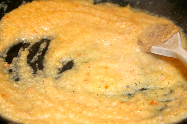 I cooked the paste down for about 5-6 minutes with constant stirring until most of the water from the onion had been cooked out and it began to brown a bit. This gives great color and flavor. You want to cook out the raw onion bitterness. This paste will help thicken my sauce. If I had thought ahead, I would have also thrown in a couple of the raw shrimp into the purée. This would have added another level of flavor to the overall dish. This is a great trick to do in dishes where you want the flavor of ingredients that you really don’t want to stew for a long time.