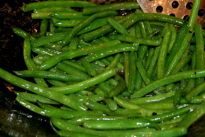 I think stir fried green beans are my all time favorite dishes and they are so easy to make. This Szechuan inspired dish is not too hard to make. I started by quickly steaming some green beans in a hot pan with a splash of water and a cover just until they turned bright green. That takes only a minute. You don’t want to overcook them. Once flash steamed the beans are quickly cooled in cold water and drained. I like to precook the beans a bit as it makes it easier to stir fry without burning them. Next I took some chopped pork and seasoned it with salt, pepper and Szechuan peppercorn. I added some chopped garlic and ginger to the meat. I heated my wok until it was almost smoking, added some oil and threw in a half teaspoon of red chili in oil. This was the kind of chili that is like red pepper flakes that have been cooked in oil and placed in a jar. The meat was added to the wok and it was fried with constant stirring just until cooked.